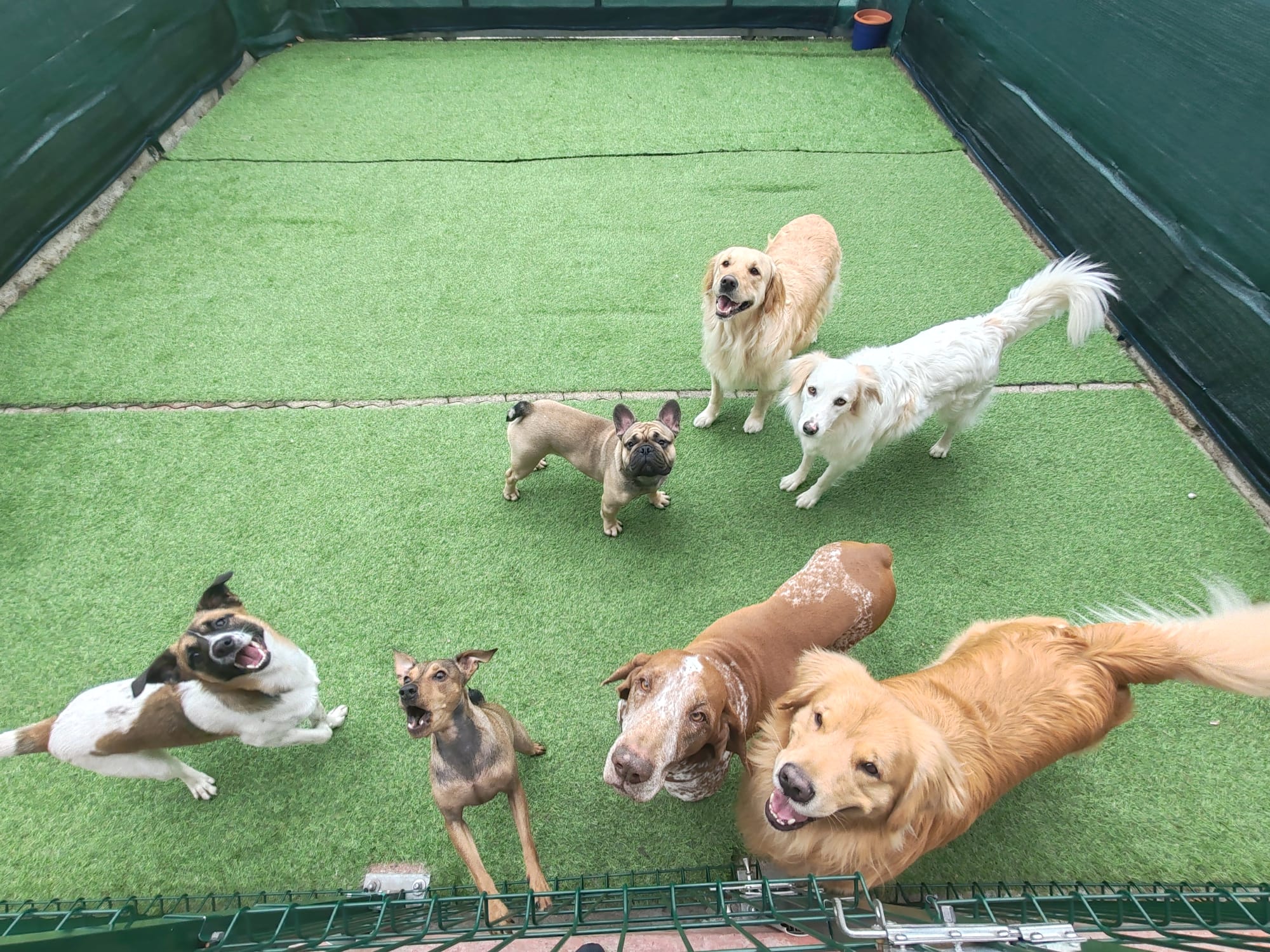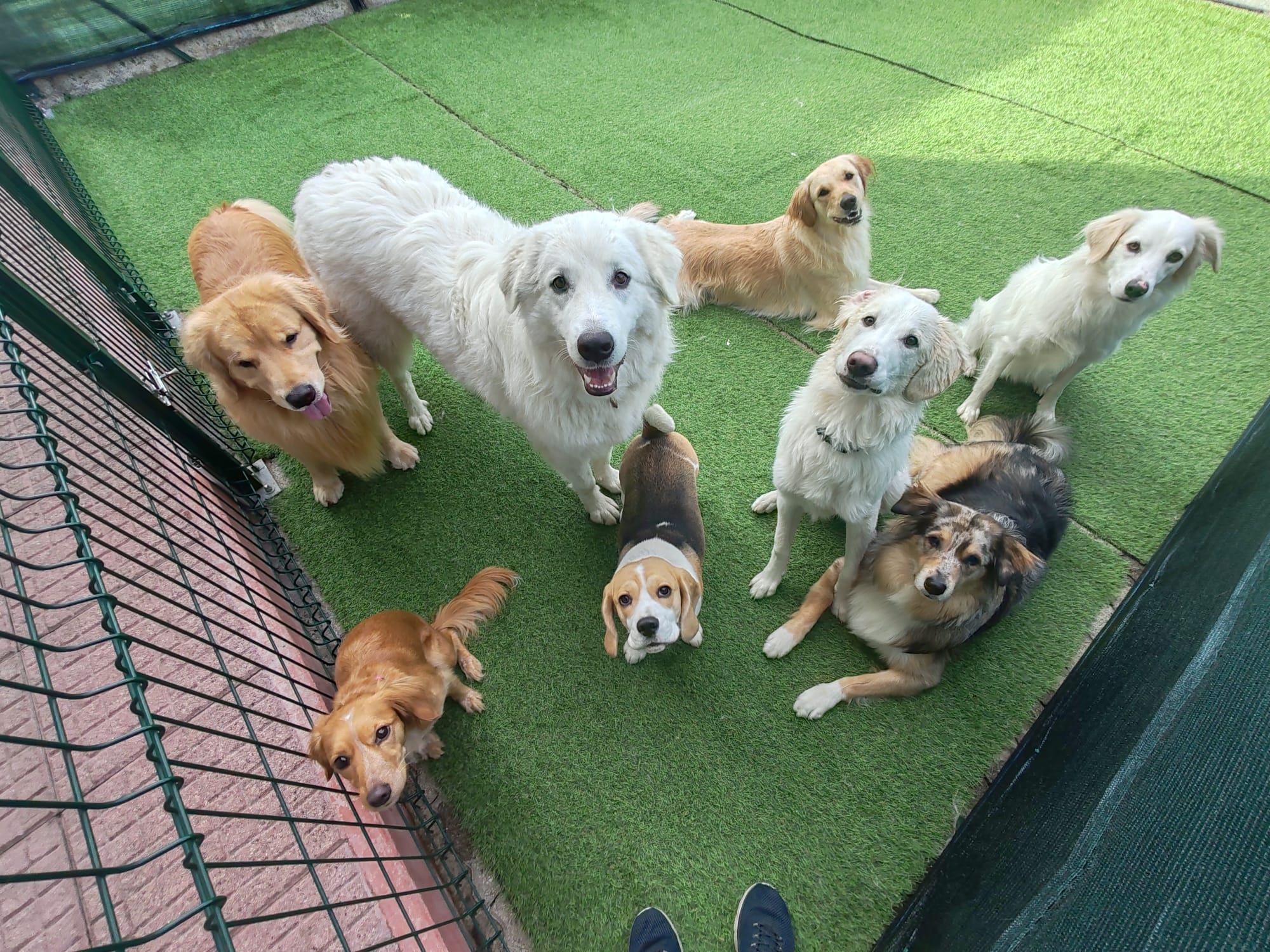 Ci prendiamo cura dei vostri amici a 4 zampe per l'intera giornata, li facciamo socializzare, giocare e sgambare in un'area esterna recintata.